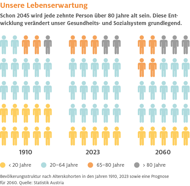 Diese Alltagserfahrungen sind keine Einzelfälle. Sie sind Symptome eines demografischen Wandels, der unser Gesundheits- und Sozialsystem zunehmend unter Druck setzt. Was lange als Zukunftsszenario galt, ist längst Realität und die Entwicklung beschleunigt sich.